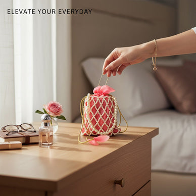 Enhance your wedding look with our Bridal Pink Pearl Work Potli Bag, perfectly crafted for Mehndi, Haldi, Sangeet & Reception ceremonies.Made with premium organza fabric and adorned with beautiful pearl detailing, this potli creates a charming and graceful appearance.The soft pink shade symbolizes joy, beauty and celebration, making it an excellent choice for bridesmaids, sisters of the bride, and wedding guests.This potli is stylish yet spacious enough to carry mobile, cash, lipstick, compact & essentials.It also makes a thoughtful and elegant wedding return gift.